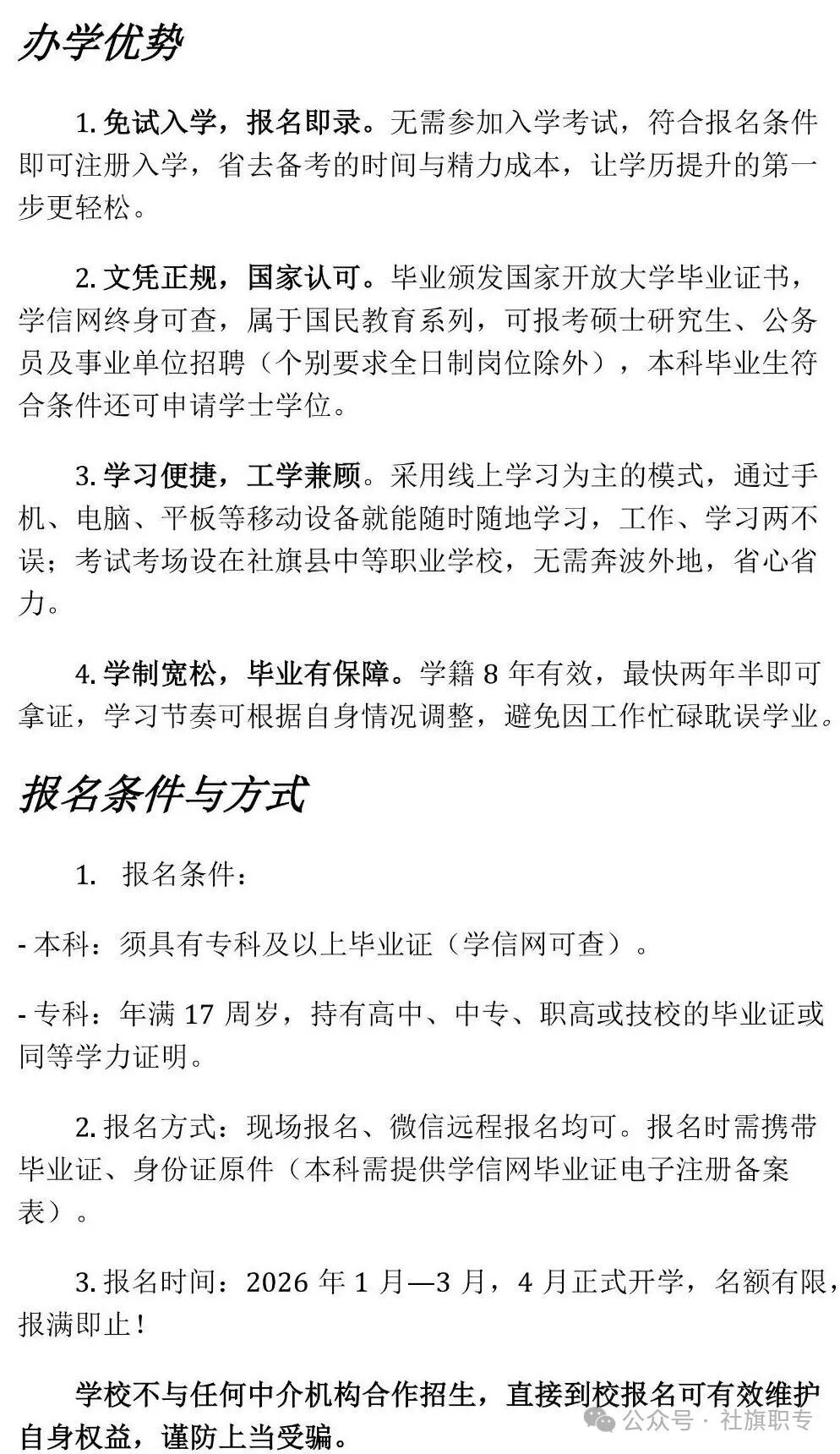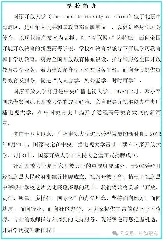 社旗开放大学2026春期招生简章